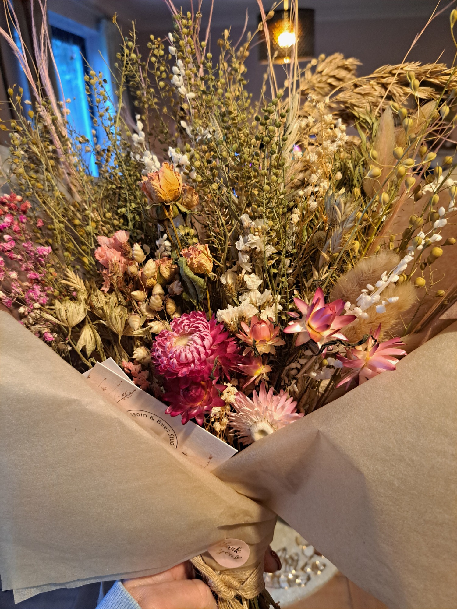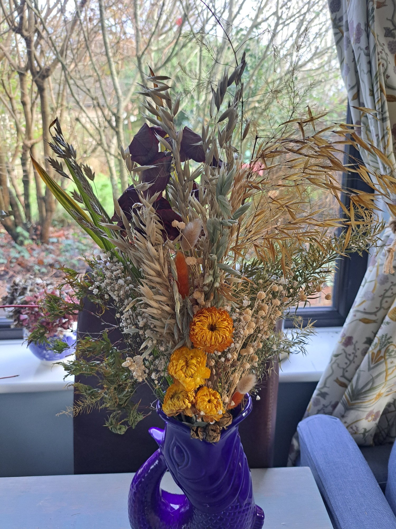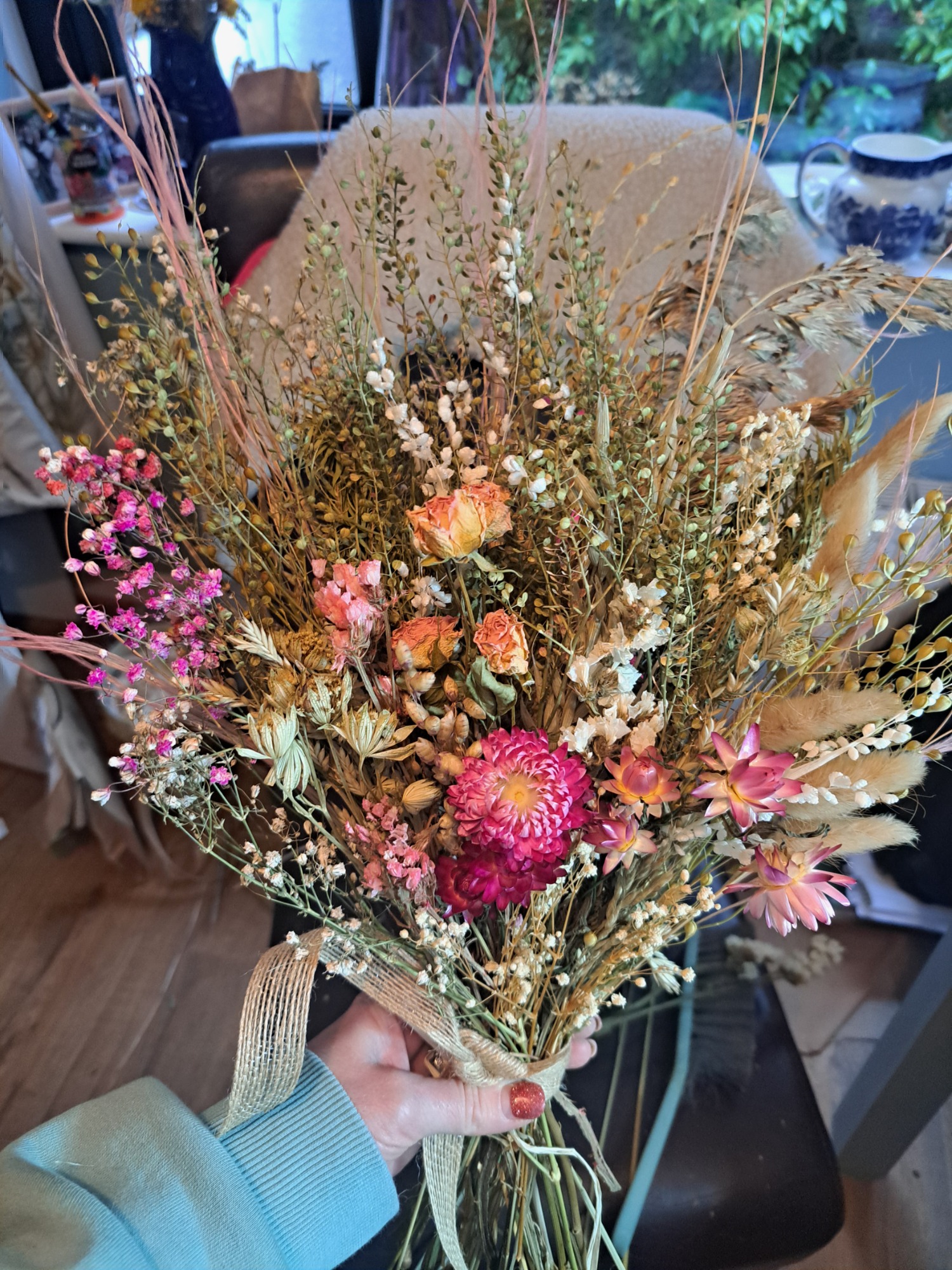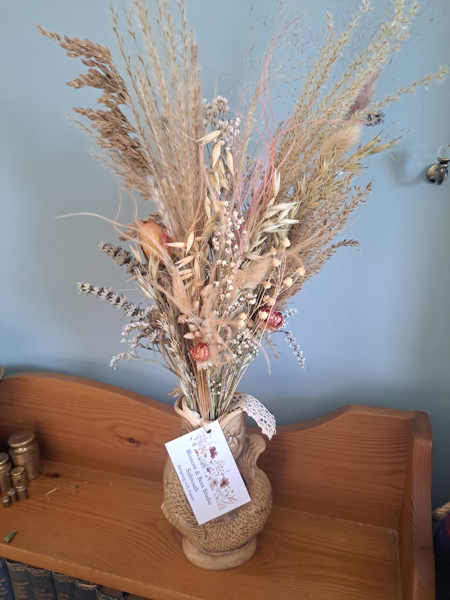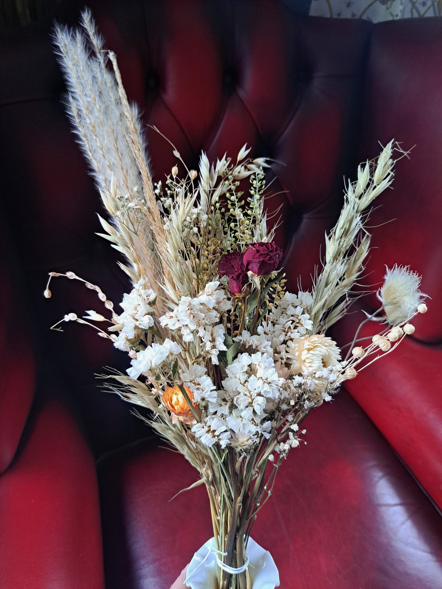 Dried flowers, if cared for correctly, will last for many months to years - making them a sustainable and environmentally friendlier choice than fresh flowers (although there's always room for fresh - I also run a small cut flower farm!!). The foliage and flowers are either organically grown and foraged from my own garden or from local suppliers. I have just started on this journey but in 2026 my goal is to grow as much flowers and foliage as possible for the use in the designs.