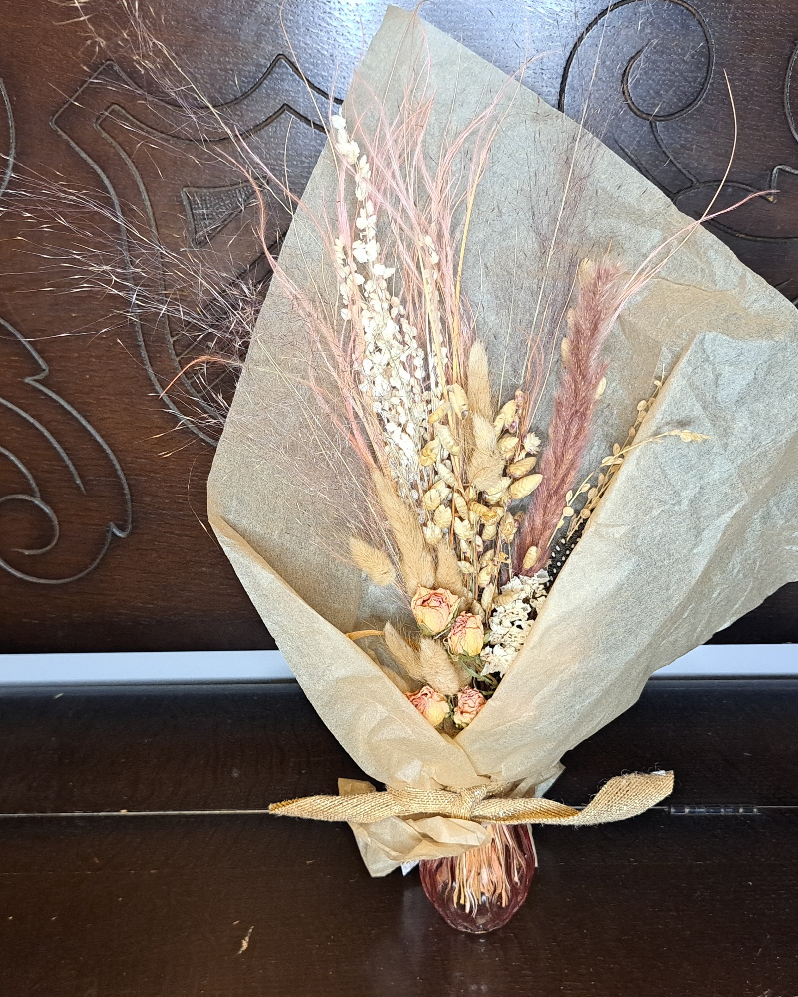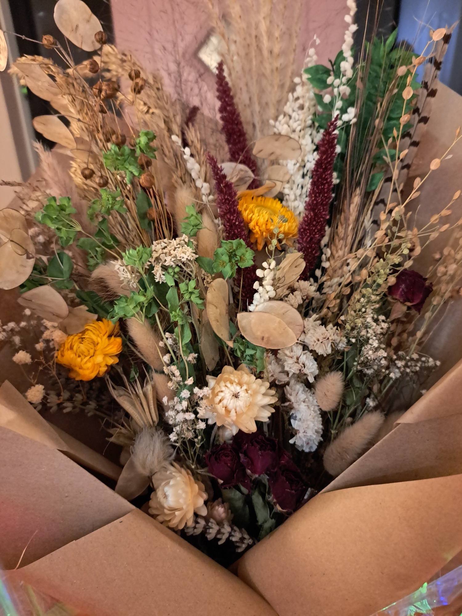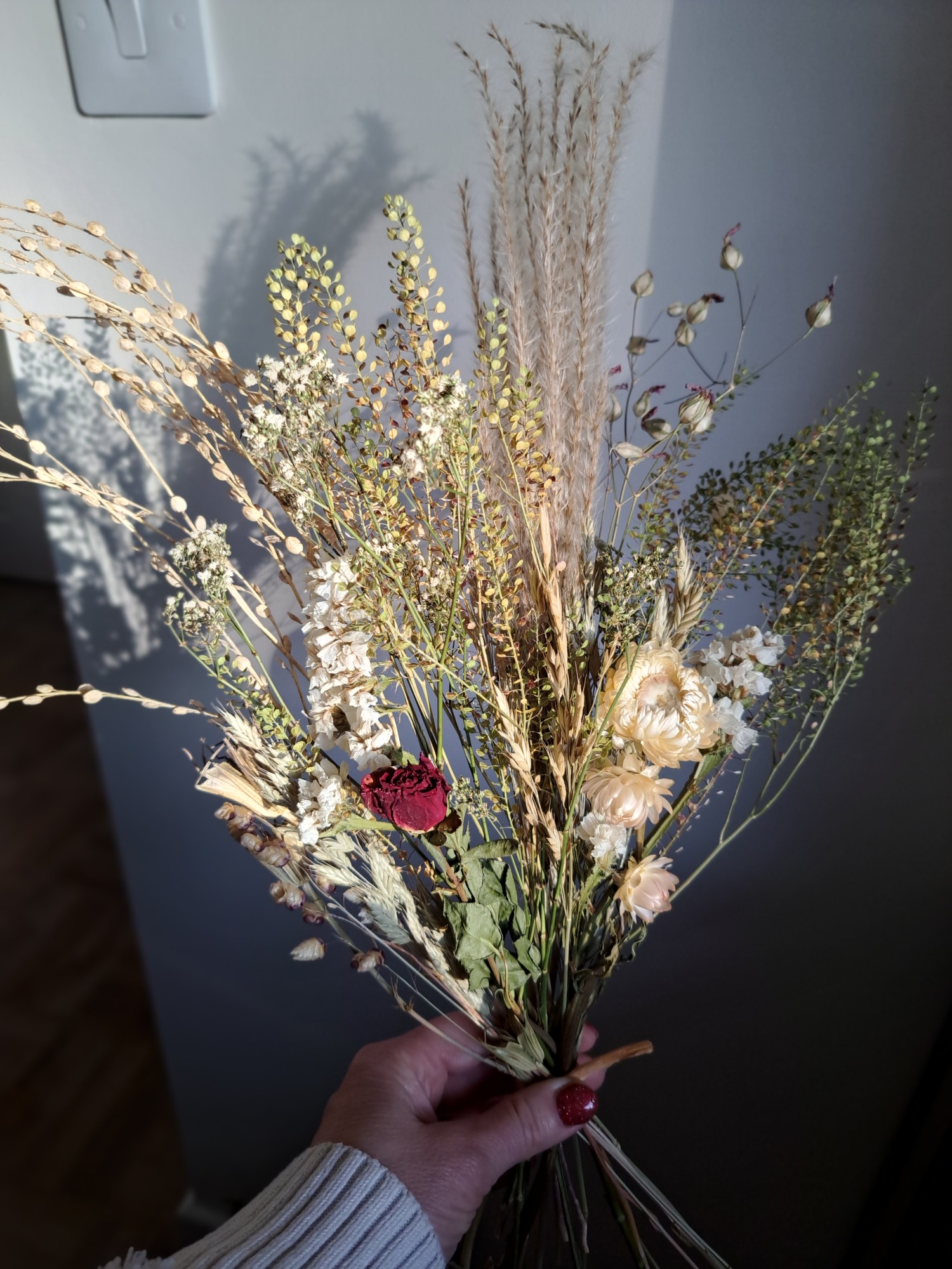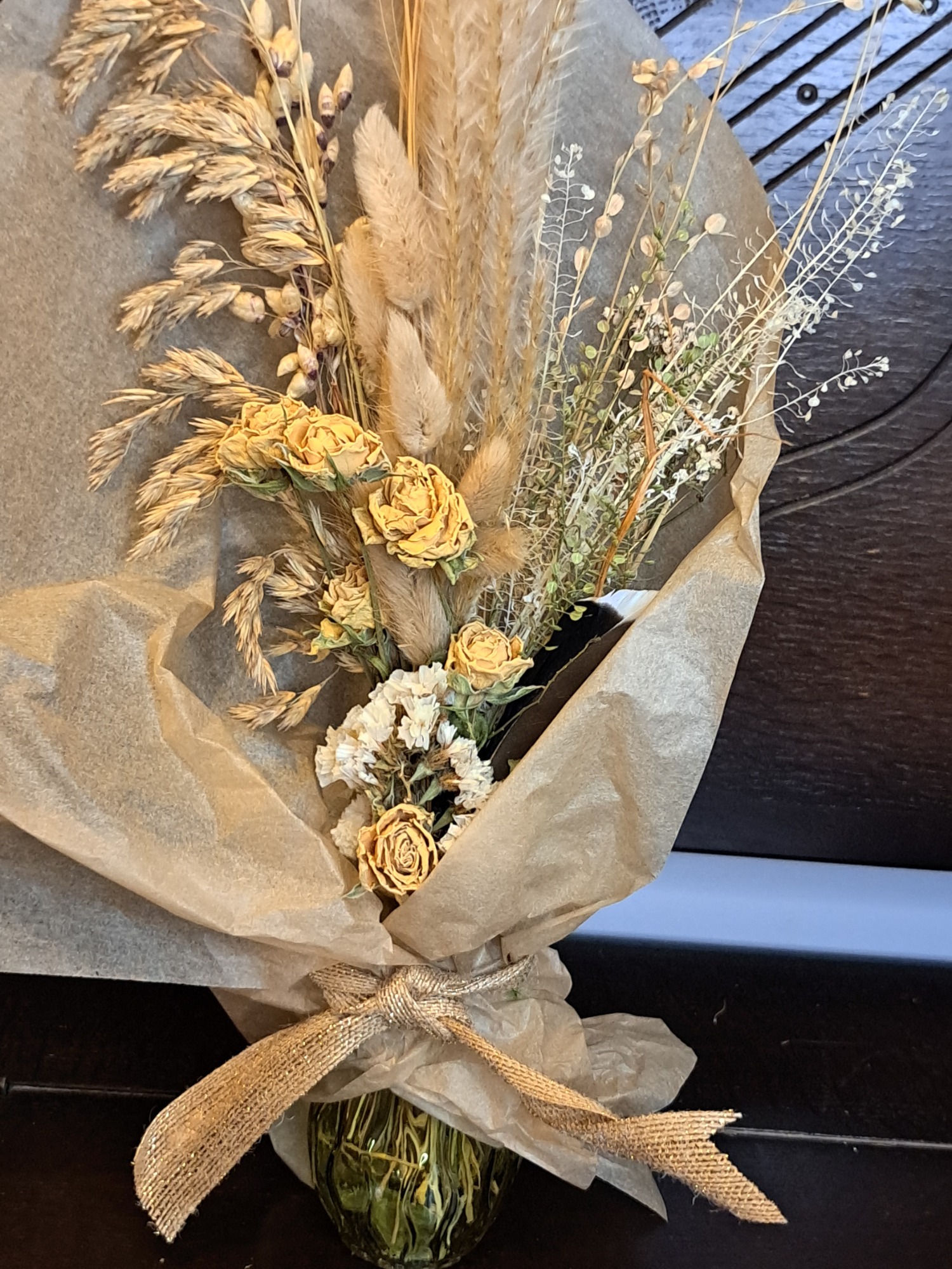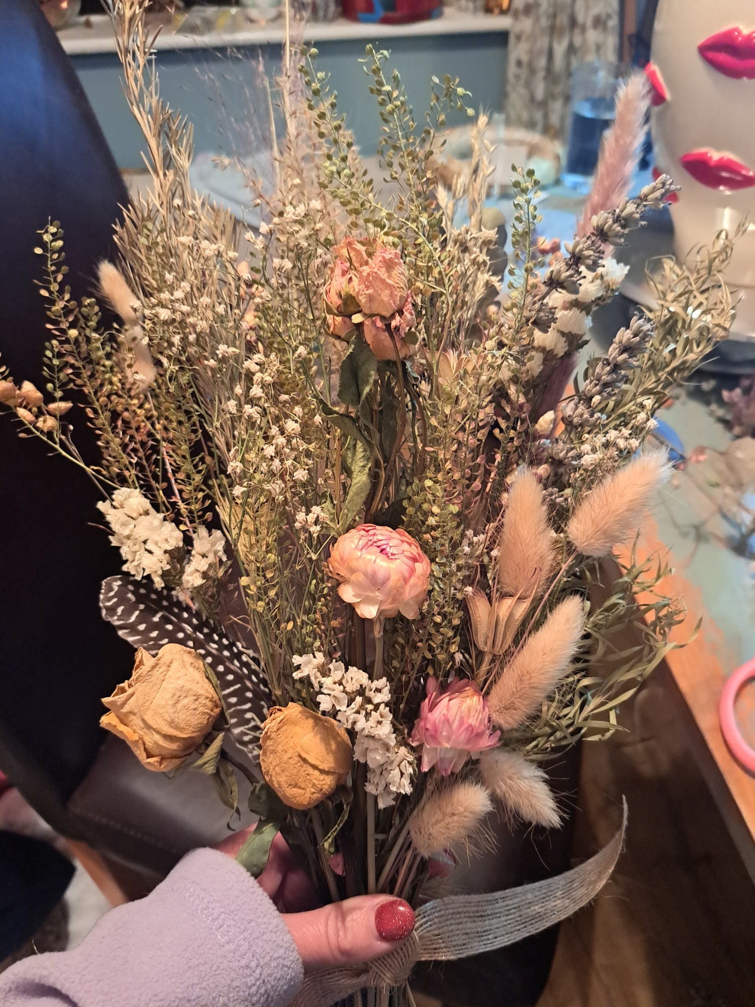 Dried flowers, if cared for correctly, will last for many months to years - making them a sustainable and environmentally friendlier choice than fresh flowers (although there's always room for fresh - I also run a small cut flower farm!!). The foliage and flowers are either organically grown and foraged from my own garden or from local suppliers. I have just started on this journey but in 2026 my goal is to grow as much flowers and foliage as possible for the use in the designs.